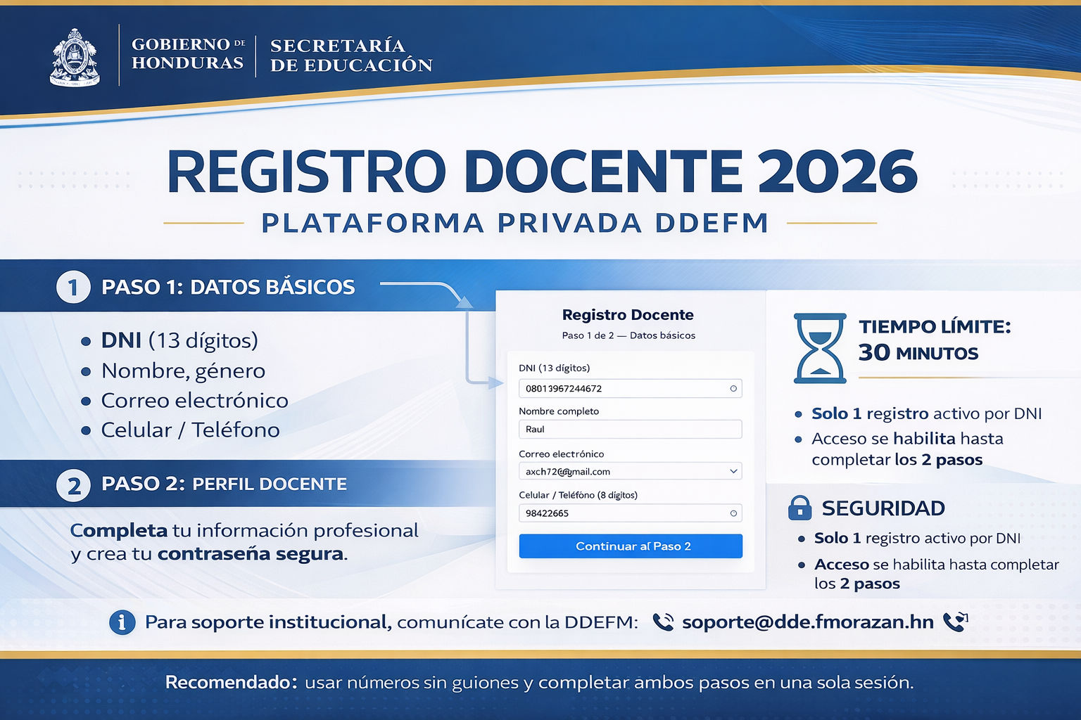 Leer másLa Dirección Departamental de Educación de Francisco Morazán (DDEFM) informa que ya se encuentra habilitado el proceso oficial de registro docente en...