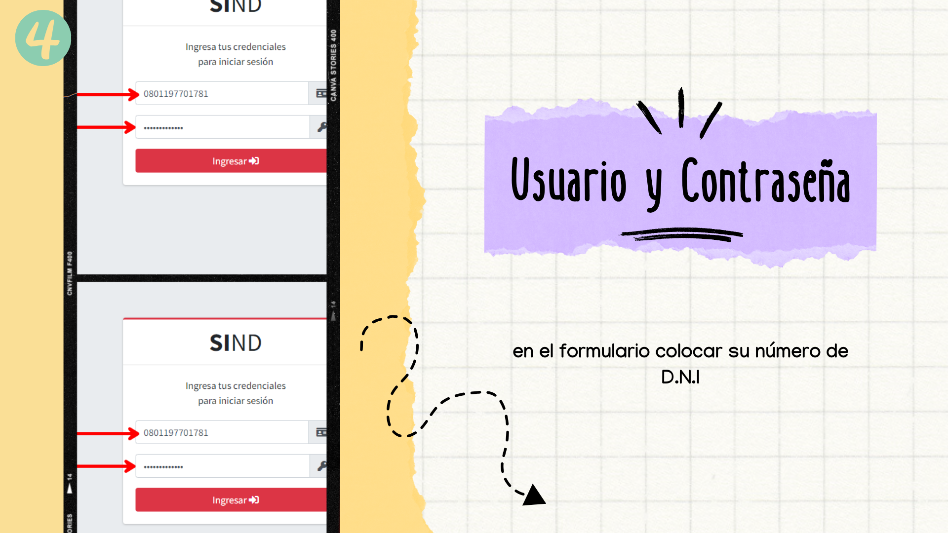 - colocar el número de Documento Nacional de Identificación en el usuario y contraseña